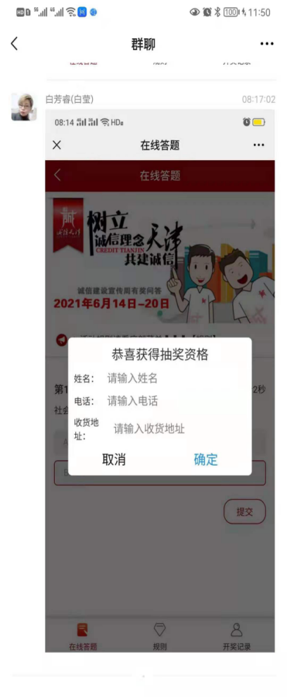 3. 组织全体教师参与“天津市诚信知识有奖问答”活动