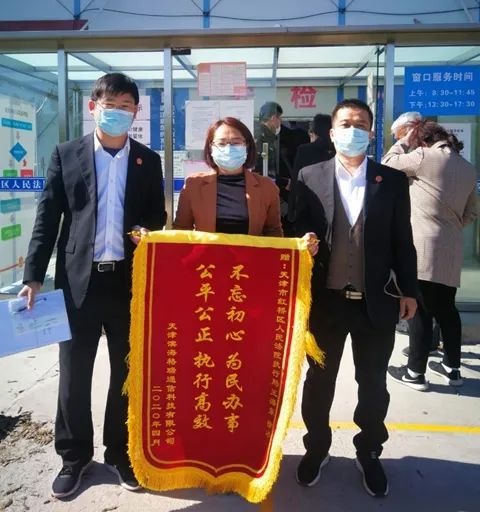 “多亏了两位法官,在疫情期间及时把被执行人拖欠多年的工程款要了回来,我们公司才能渡过这个难关,真是雪中送炭啊!”近日,拿到工程款的当事人将写着“不忘初心,为民办事,公平公正,执行高效”的锦旗亲手送给了红桥法院法官王海东和徐冰,连声道谢。
