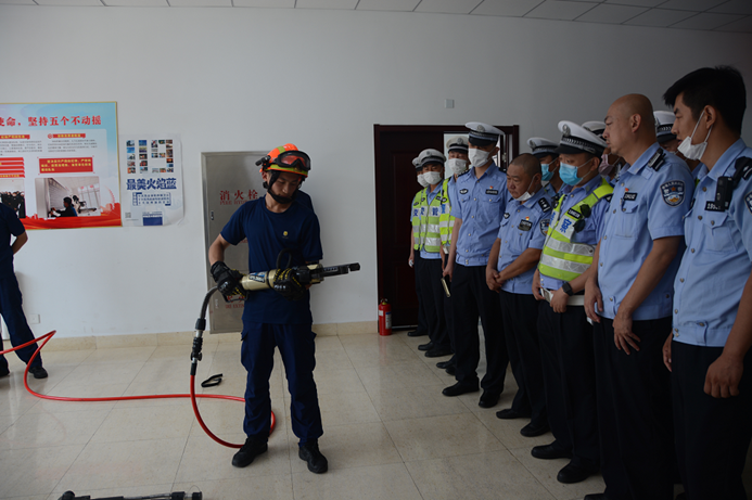 在讲座中,消防救援支队的同志从现场警戒、现场观察、实施救援、车辆破拆等专业技术进行了讲解,并组织与会人员结合公安交通管理工作应如何配合消防救援人员开展现场施救进行了交流和研究。培训后,组织与会人员进行了破拆及道路交通事故车辆灭火演练。