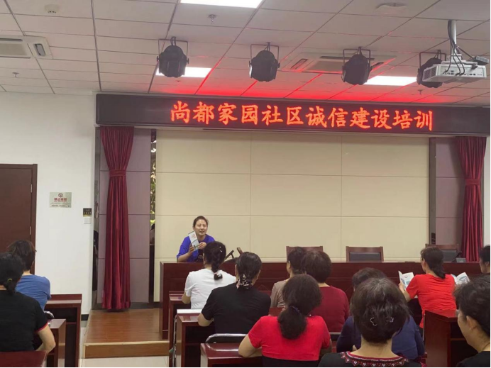 为加快推进红桥区社会信用体系建设,全面加强社区居民的诚信教育,营造人人讲诚信的良好社区风气,8月27日,三条石街尚都家园社区开展诚信培训活动,向他们讲解如诚信教育的重要性,引导形成“诚实守信、团结互助、健康向上”的社区道德风尚,共同营造良好有序的社会氛围,为创建文明社区营造良好的诚信环境,争做诚信的传播者,进一步增强诚信意识、树立诚信观念、弘扬诚信文化,共同践行社会主义核心价值观,促进文明城区建设。