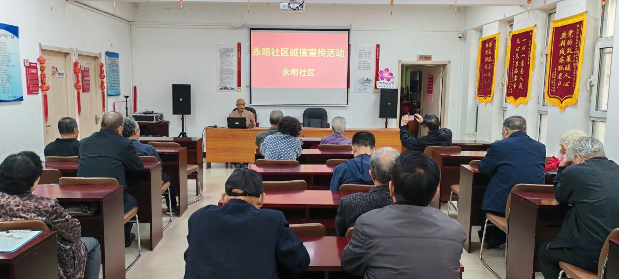 为加快推进红桥区社会信用体系建设,全面加强社区居民的诚信教育,营造人人讲诚信的良好社区风气,近日,红桥区社区宣讲员在永明社区开展《天津社会信用条例》诚信宣传活动。